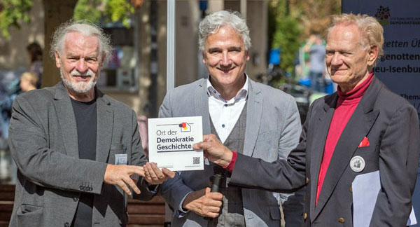 Die Stiftung „Orte der Deutschen Demokratiegeschichte“ mit Sitz in Frankfurt, hat das Hugenottenrathaus als demokratiehistorischen Erinnerungsort in Deutschland anerkannt. Die Überreichung der offiziellen Plakette fand am Tag des offenen Denkmals dem 14.09.2025 durch den Direktor der Stiftung Dr. Kai-Michael Sprenger statt. Ein Videogrußwort sendete Volker Bouffier, Ministerpräsident a.D. und stellvertretender Vorsitzender des Stiftungsrats „Orte der deutschen Demokratiegeschichte“. Die Initiatoren der Trägerverein Hugenottenrathaus Neu‑Isenburg e.V. dem Verein für belebte Geschichte im Alten Ort Pour l´Yseboursch sowie der Arbeitsgemeinschaft (AG) Stadtmarketing Neu‑Isenburg wollen den Wert und die Bedeutung vom Hugenottenrathaus sichtbar machen und zeigen, dass hier bereits ab 1702 über mehrere Generationen demokratische Grundwerte gelebt wurden. Die Initiatoren und die Stadt Neu-Isenburg erhalten die offizielle Plakette zur Markierung und individuellen Anbringung am Marktplatz im Alten Ort.
